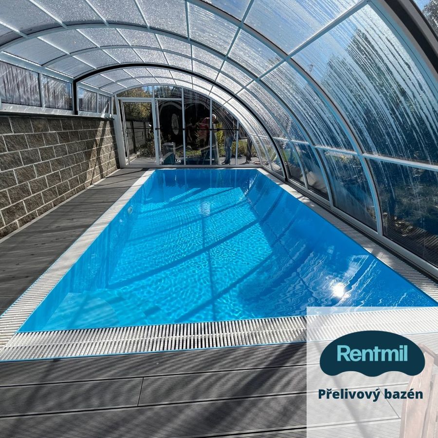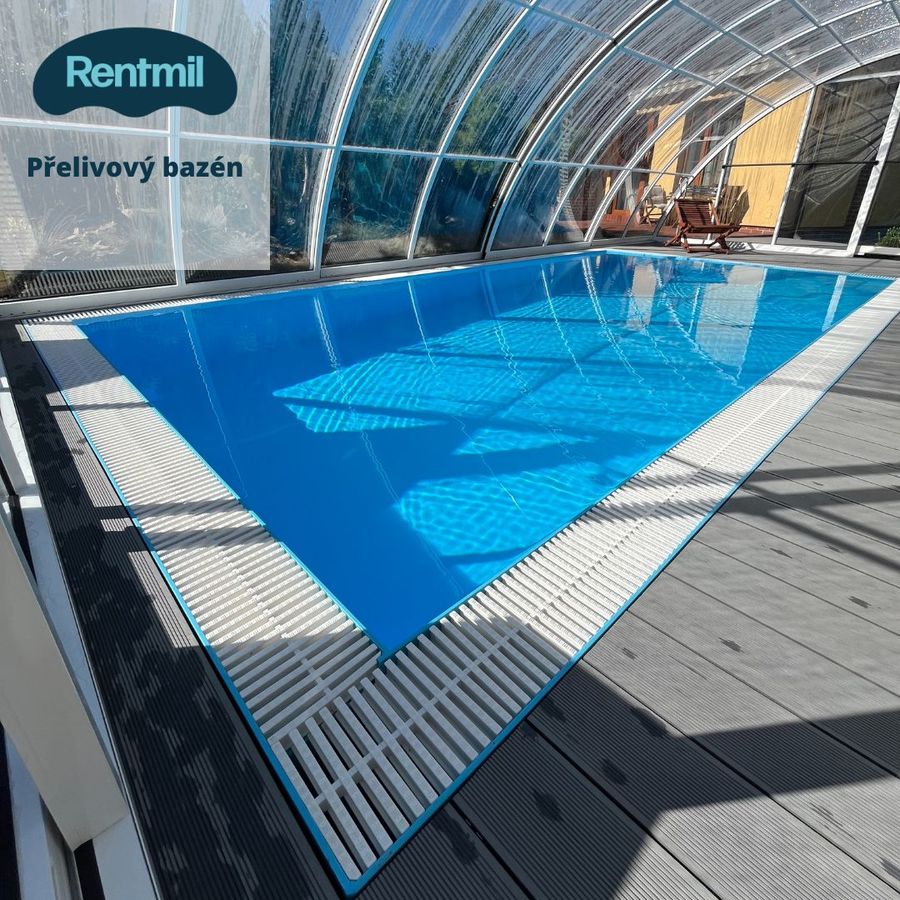 Bazén s přelivem je přitažlivý, protože už na první pohled láka ke koupání. Bazén je v rovině s ostatním terénem, jeho hrany splývají, elegantní mřížky neruší. Proto je tento typ bazénů vhodný pro vnitřní i venkovní prostory a také pro komerční využití.